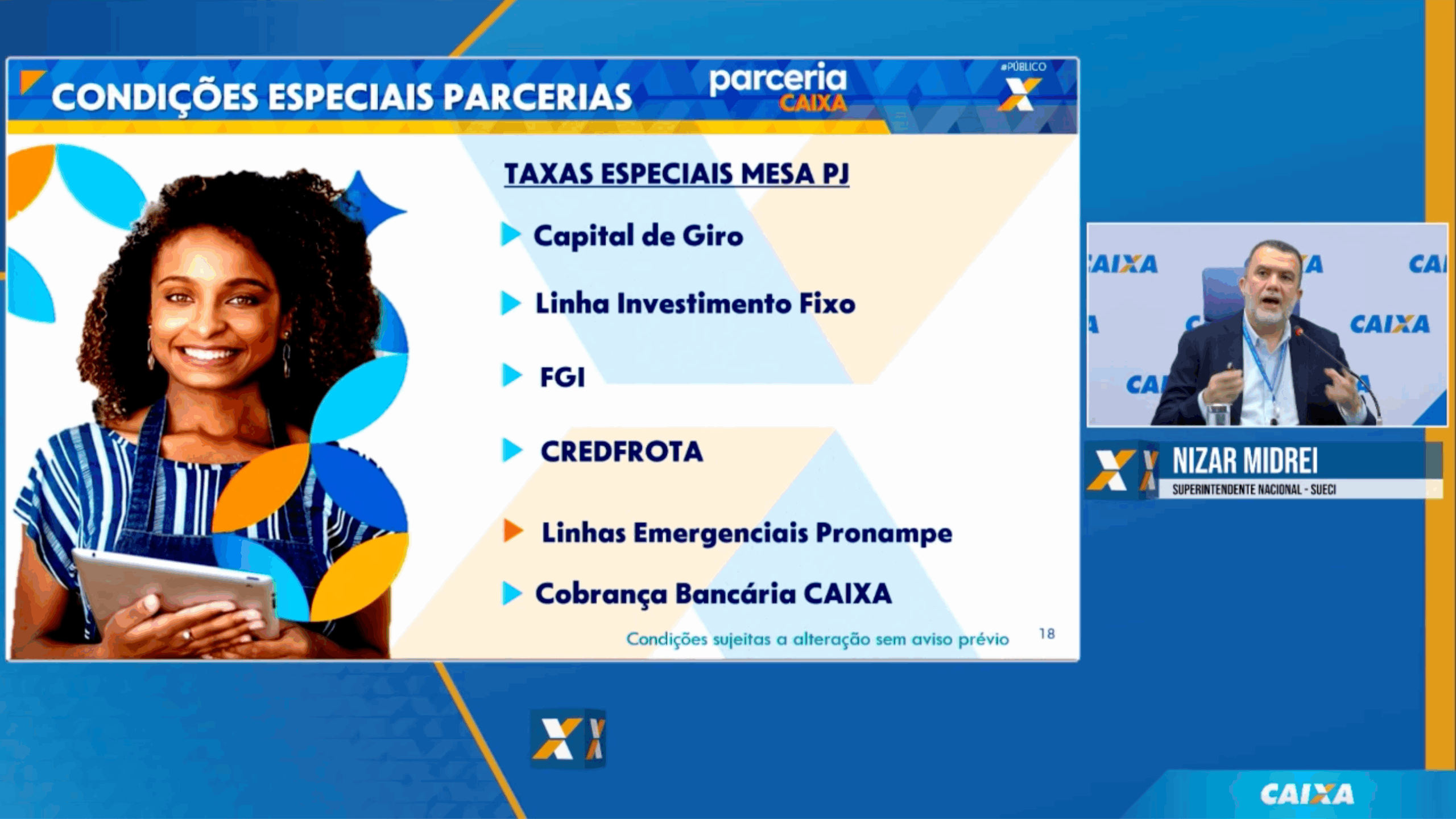 A parceria contempla taxas especiais na mesa de negociação para pessoas jurídicas, com condições diferenciadas para capital de giro, linhas de investimento e operações com uso do Fundo Garantidor de Investimentos. Também fazem parte do convênio crédito e frota, além de linhas especiais de programas do governo, como o Pronamp, e tarifas diferenciadas para serviços de cobrança bancária.